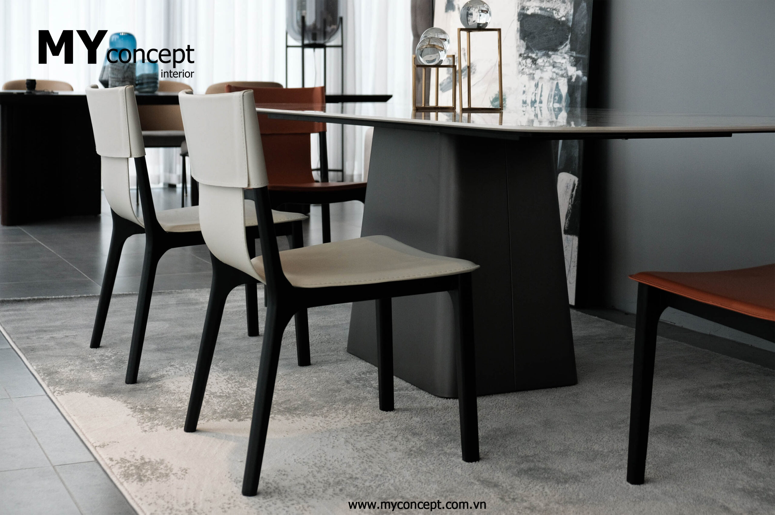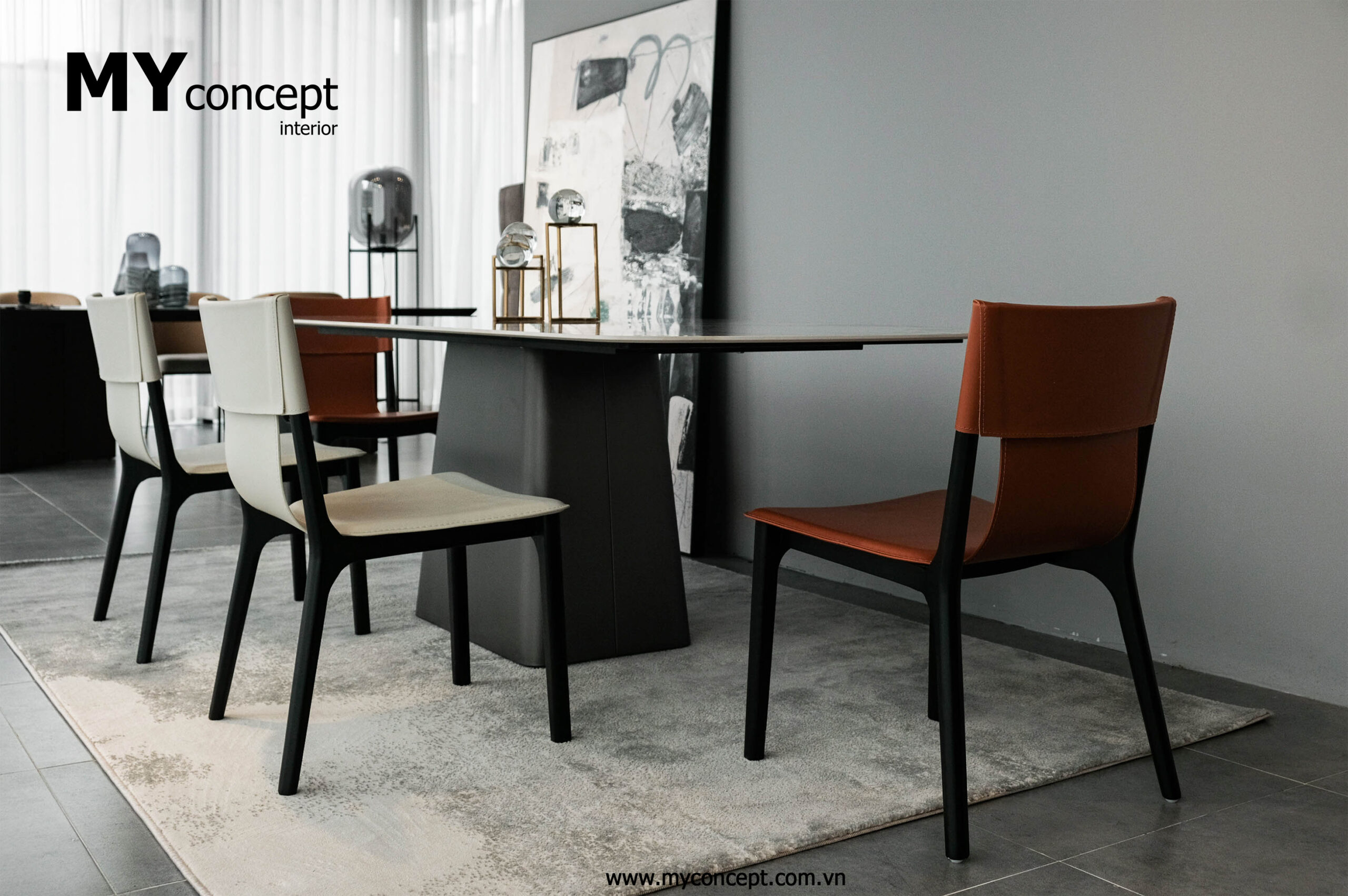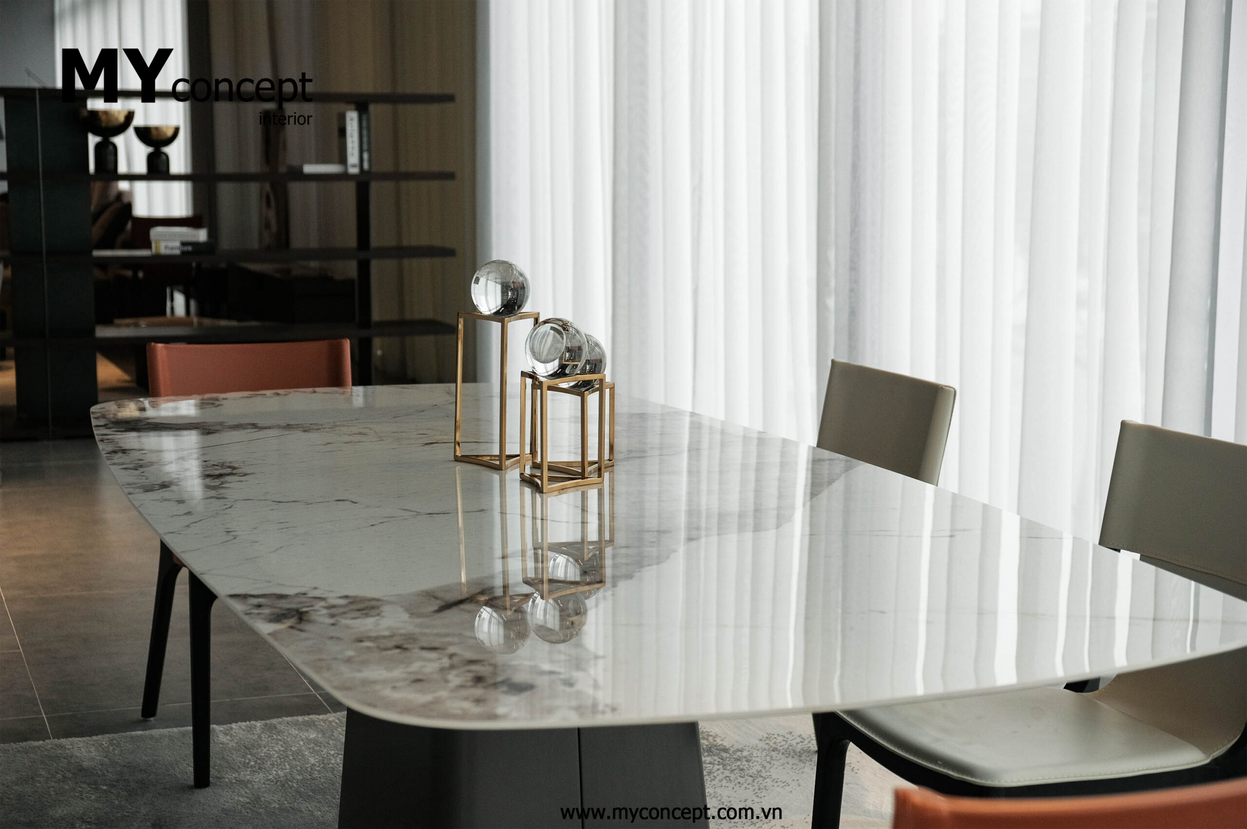 Chất liệu: Đá phiên vân loang Italy, chân kim loại.